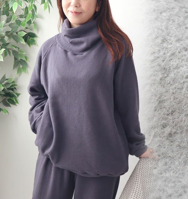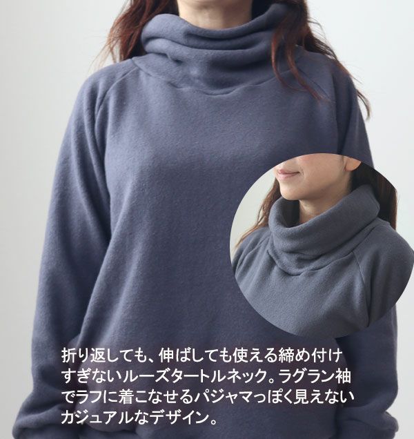 なめらかでふんわり、やさしい肌触り 【サンプル品につき40%オフ】カシミヤタッチコットレディースパジャマ上下セット・長袖/かぶり/タートルネック 【アウトレット】
