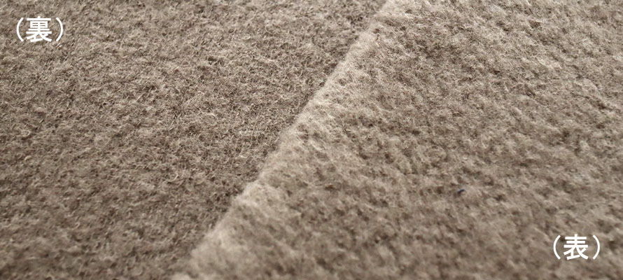 某海外ブランドや国内大手アパレルメーカーなども採用しているコットンパイル。特に海外ブランドは、地球環境を考えたリサイクル・エコ志向が強く、綿100%の素材が好まれています。ポリエステルを使用しているのはループを埋め込むグランド部分のみ、肌に当たる部分は綿100%のタオル地を起毛することで、あたたかいのに蒸れにくく、安心してお休みいただけます。