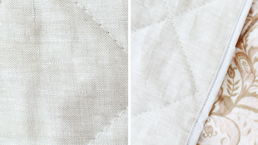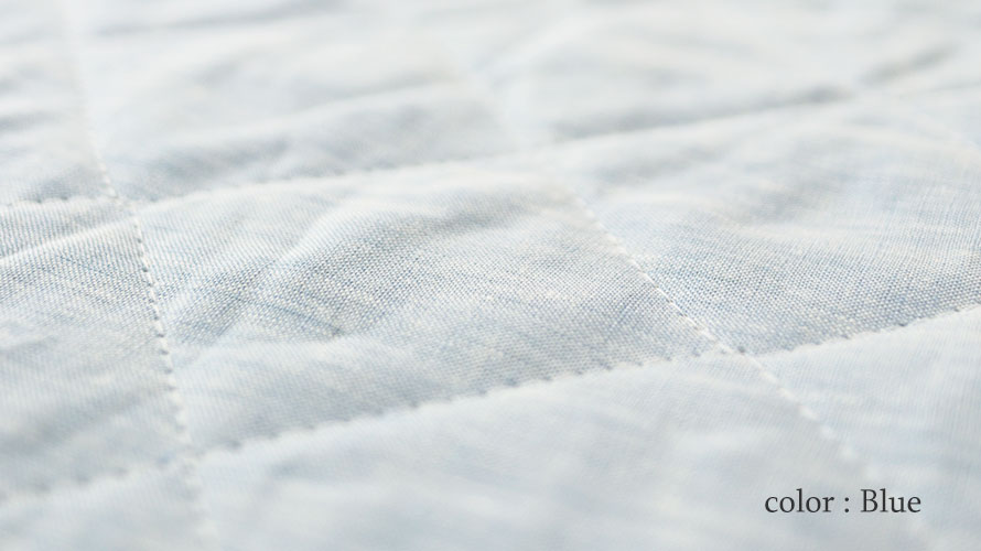 麻は天然繊維の中でも最も吸湿性に優れており、汗をかいてもサラサラ。その通気性と接触冷感はまさに天然のクーラー。細番手のラミーを100%使用したリネンのキルト生地で汗をかいてもべたつかず夏を爽やかに過ごして頂けます。