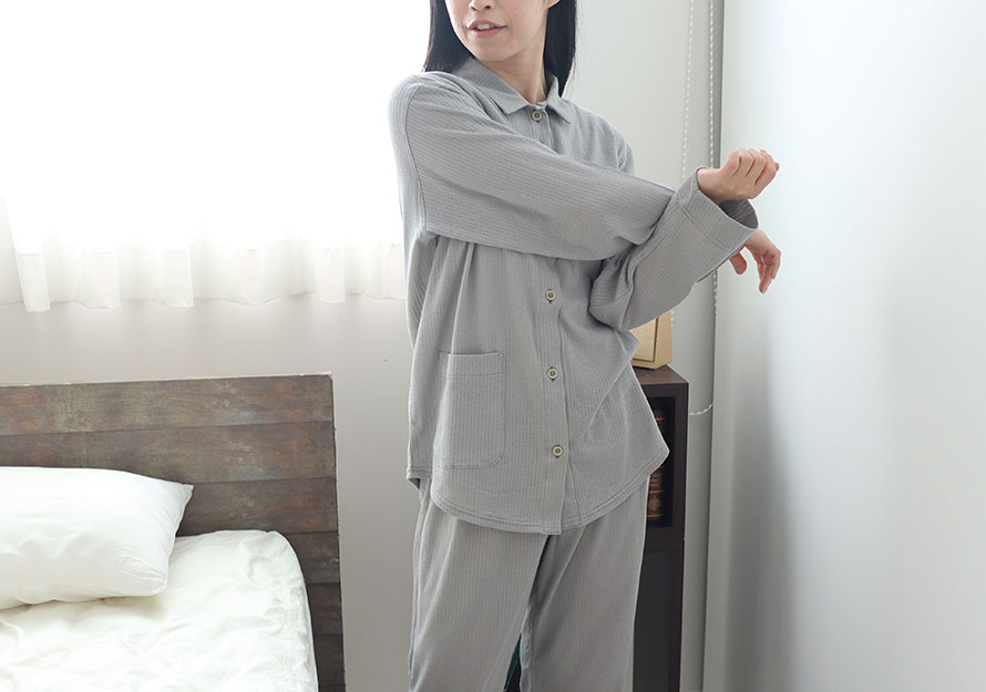 - カジュアルなグレーは、ルームウェアにも最適です。