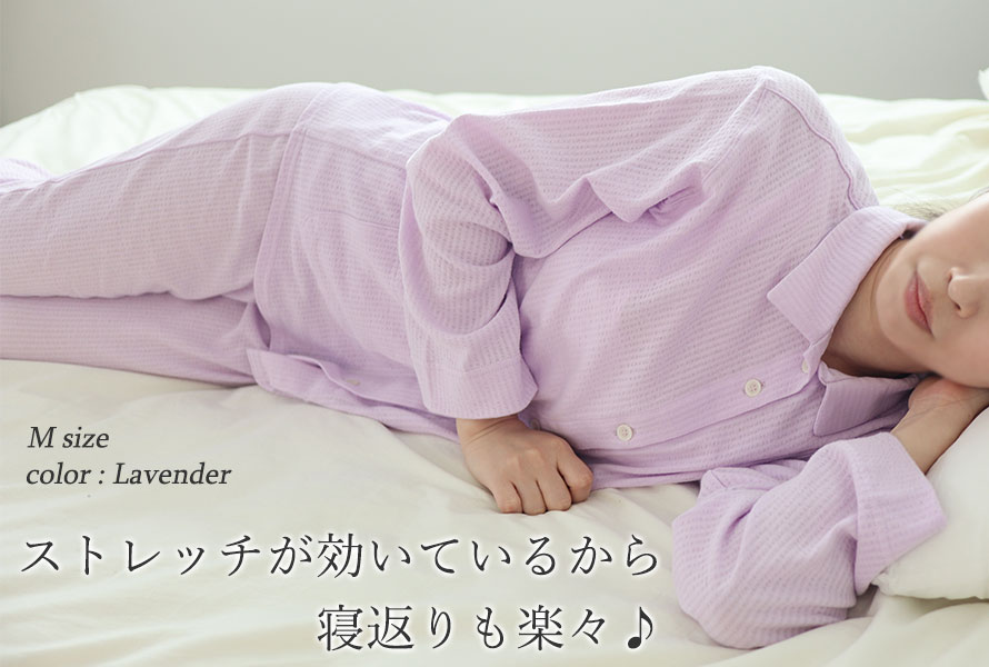 ぽこぽことした波のようなリップル加工は、肌にはりつかないのでさらっと快適。極細80番手のローン生地は高級感があり、やわらかく軽いので、敏感肌の方にもおすすめです。