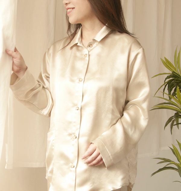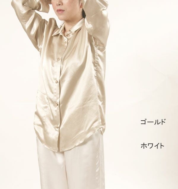 極上の光沢と肌触り シルクサテンレディースパジャマ 上下セット・長袖/前開き/襟あり 【オーダーメイド】