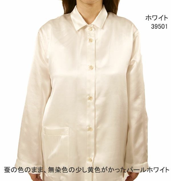 東洋一の国産シルク 川俣シルクサテンレディースパジャマ 上下セット・長袖/前開き/襟あり 【オーダーメイド】