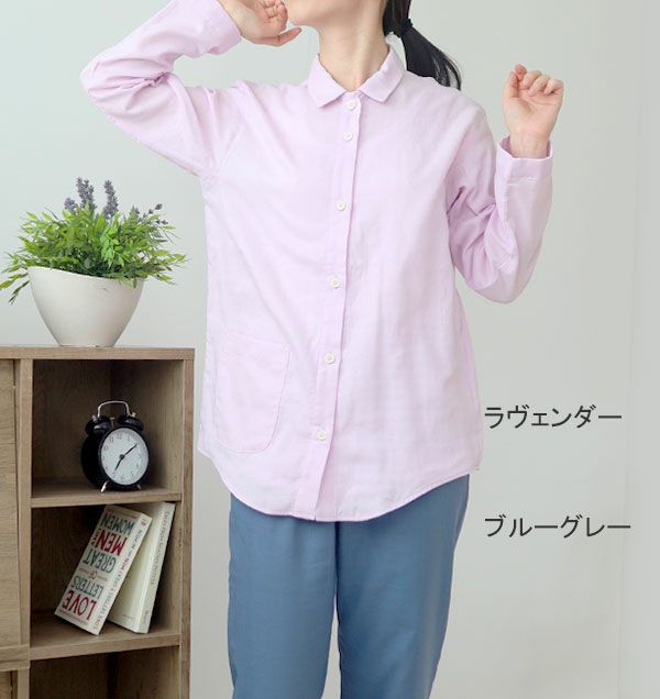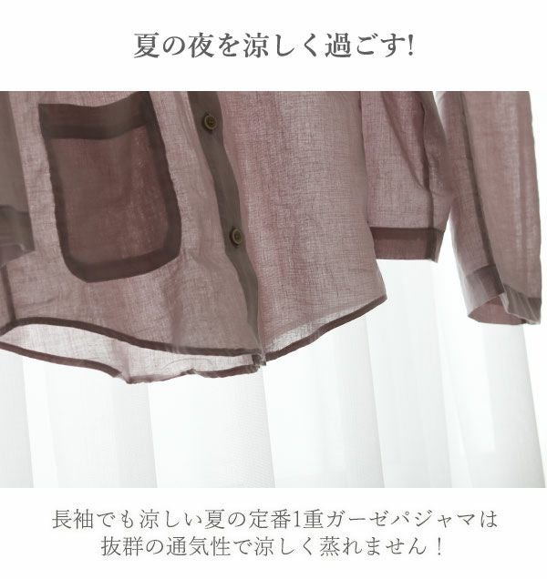 1重ガーゼだから!長袖なのにこんなに涼しい 夏のかるふわガーゼレディースパジャマ 上下セット・長袖/前開き/襟あり 【オーダーメイド】