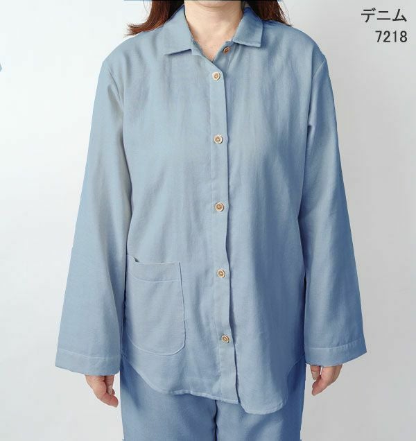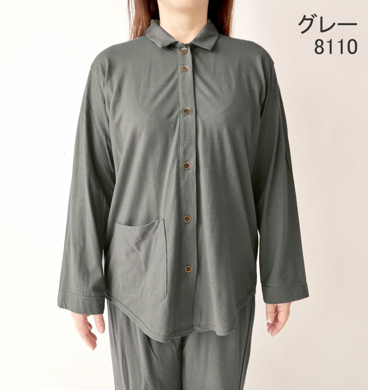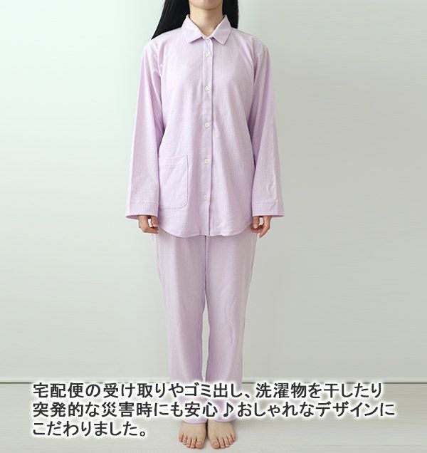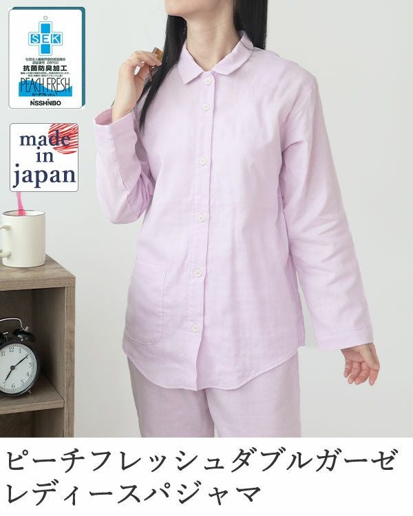 SEK取得の日清紡ピーチフレッシュ加工で清潔 抗菌防臭ダブルガーゼレディースパジャマ上下セット・長袖/前開き/襟あり 【オーダーメイド】