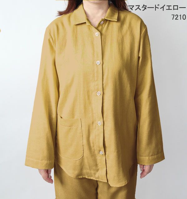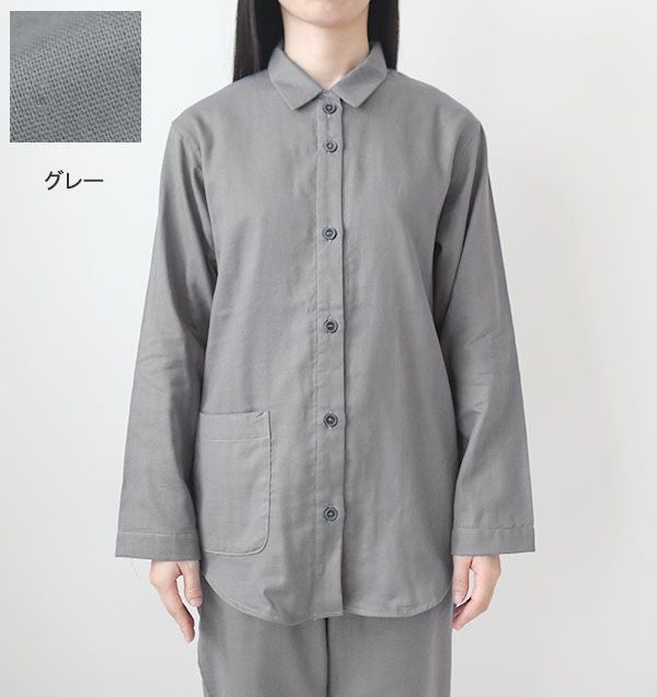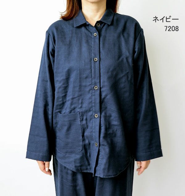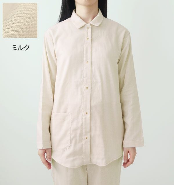 地球にもお肌にも優しい特別な風合い 40オーガニックコットンダブルガーゼレディースパジャマ上下セット・長袖/前開き/襟あり 【オーダーメイド】