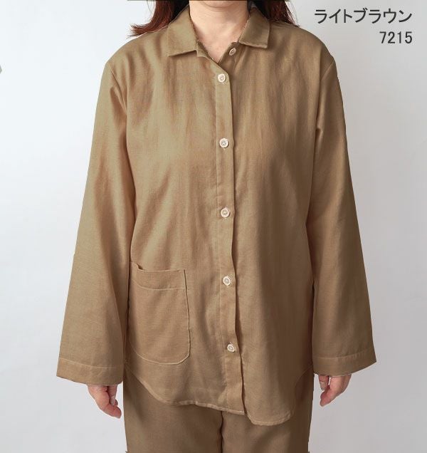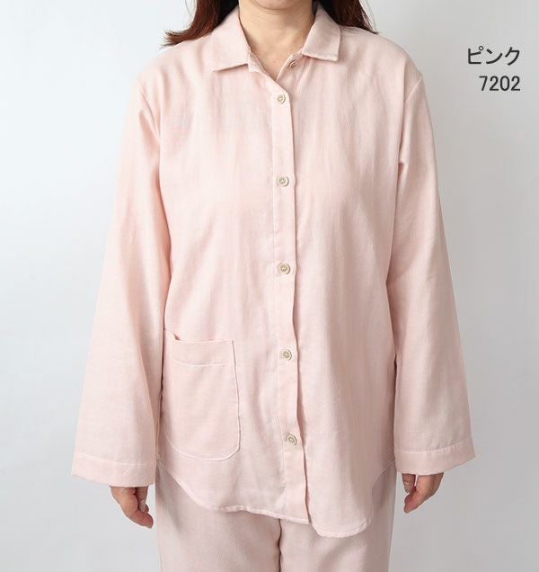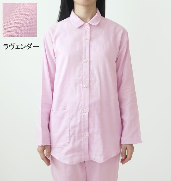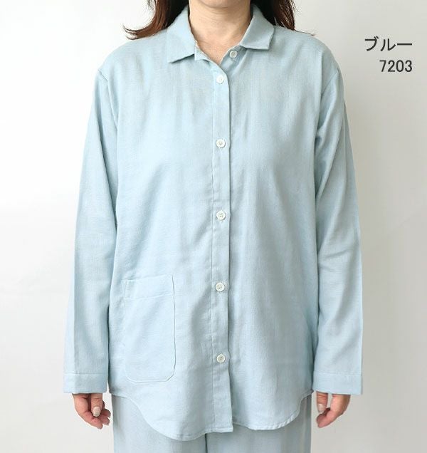 毛布なみの暖かさ!冬も使えるガーゼ 3重ガーゼレディースパジャマ 上下セット・長袖/前開き/襟あり 【オーダーメイド】
