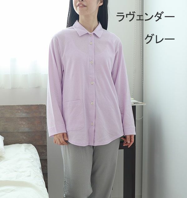 ふわっと軽やか、ベタつかない。夏の爽快パジャマ エアリーリップルレディースパジャマ 上下セット・長袖/前開き/襟あり 【オーダーメイド】