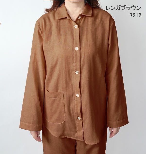 洗い加工のフランスリネンで優雅な夏を やわらかるいリネンレディースパジャマ上下セット・長袖/前開き/襟あり 【オーダーメイド】