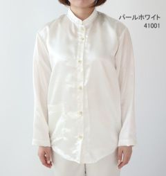 川俣シルクサテンレディースパジャマ 上下セット・長袖/前開き/バンドカラー