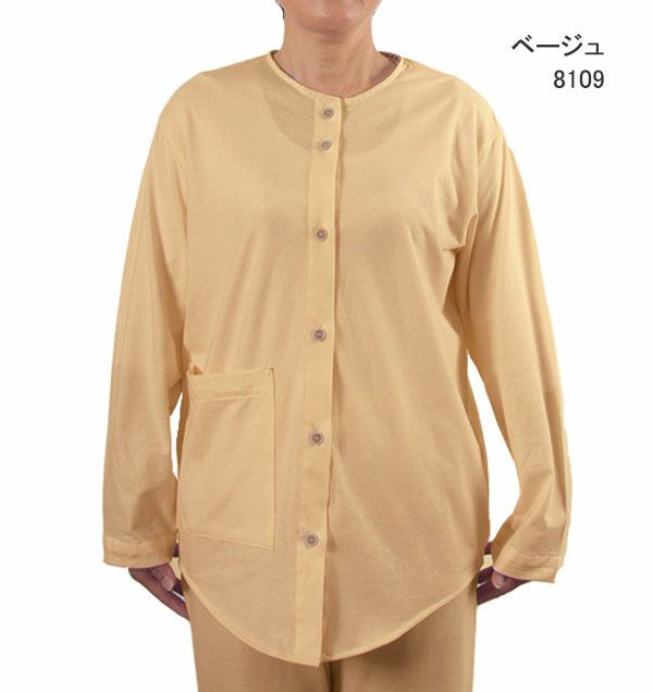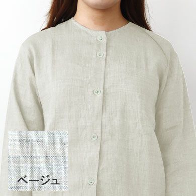 突然の来客や、ちょっとそこまでの外出にも使えるデザインで便利です。シャツのようにスマートで、襟が首周りに触れずおすすめです。生地の種類も豊富にご用意。