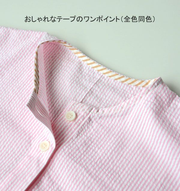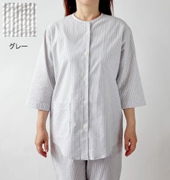 まるでシャツのようなストライプ柄。ズボンだけかえればゴミ出しはもちろん外出にも着ていけそうです!七分袖の涼しい夏のルームウェアとしても