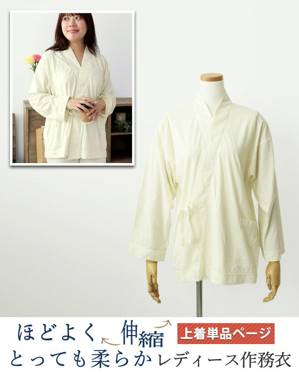 綿なのに、うれしい快適ストレッチ やわらか天竺ニットレディース作務衣上着単品・長袖 【オーダーメイド】