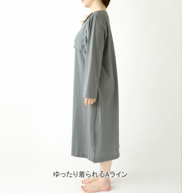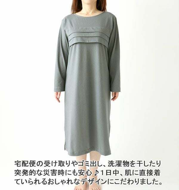 ルームウェアとして最適なニットワンピース。胸2重で透けにくい、しかもかわいいデザインで1日中ずっと着ていたくなるワンピース(ネグリジェ)です。