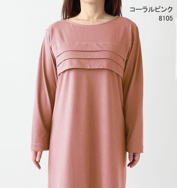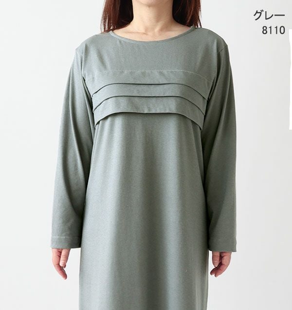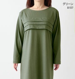 やわらか天竺ニットレディースワンピース・長袖/かぶり/ラウンドネック/三段タック