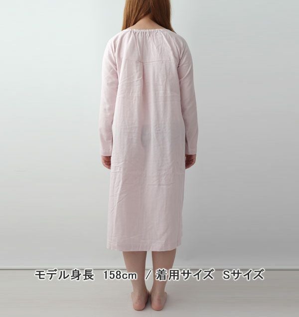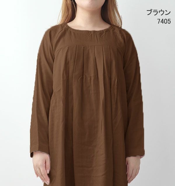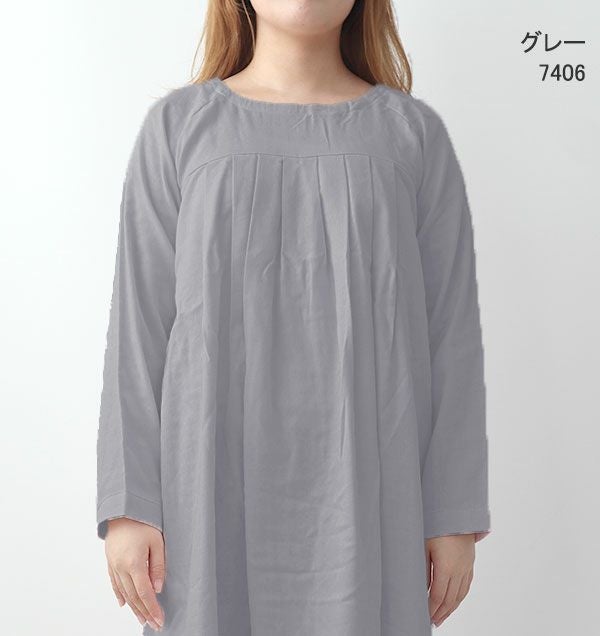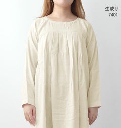 40オーガニックコットンダブルガーゼレディースワンピース・長袖/かぶり/Aライン/胸元切替タック