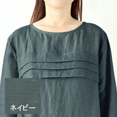 やわらかるいリネンレディースワンピース・長袖/前開き/Aライン/胸元切替タック