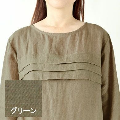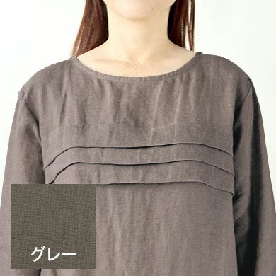 洗い加工のフランスリネンで優雅な夏を やわらかるいリネンレディースワンピース・長袖/かぶり/ラウンドネック 【オーダーメイド】