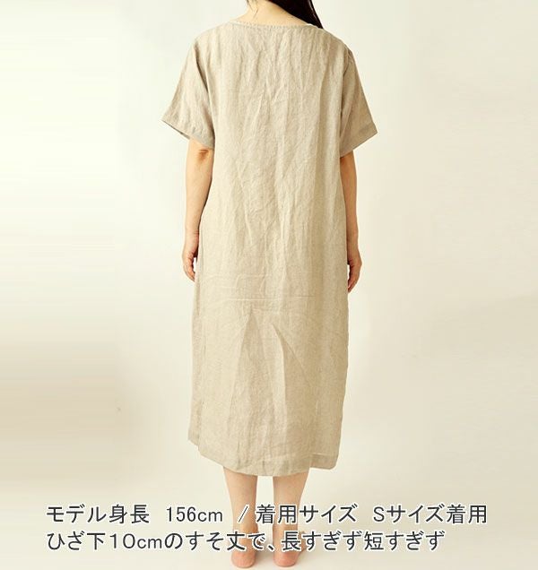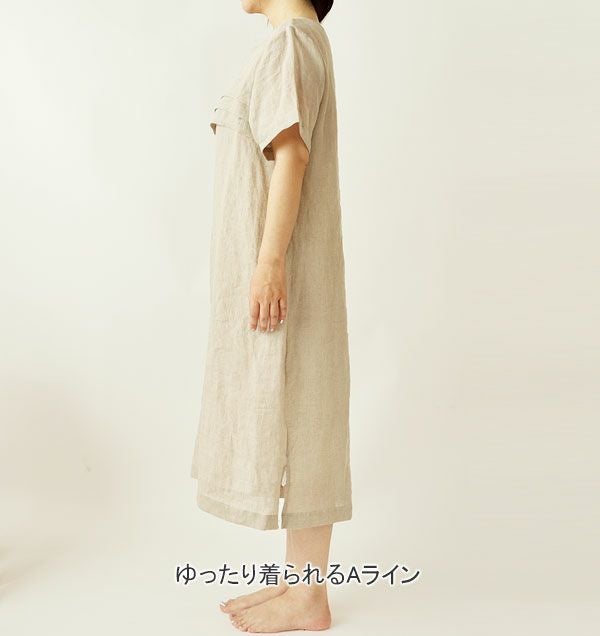 洗い加工のフランスリネンで優雅な夏を やわらかるいリネンレディースワンピース・半袖/かぶり/ラウンドネック 【オーダーメイド】