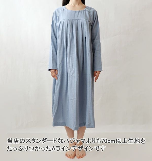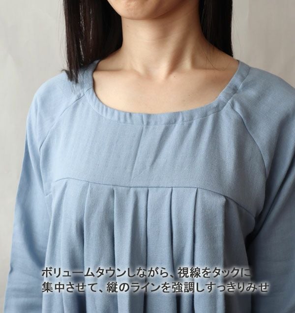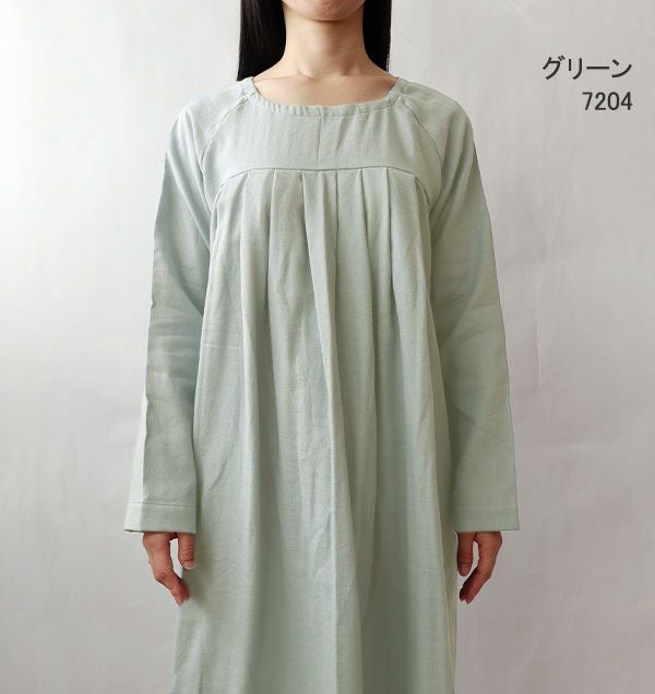 毛布なみの暖かさ!冬も使えるガーゼ 3重ガーゼレディースワンピース・長袖/かぶり/Aライン/胸元切替タック 【オーダーメイド】