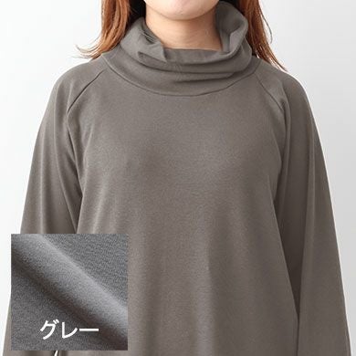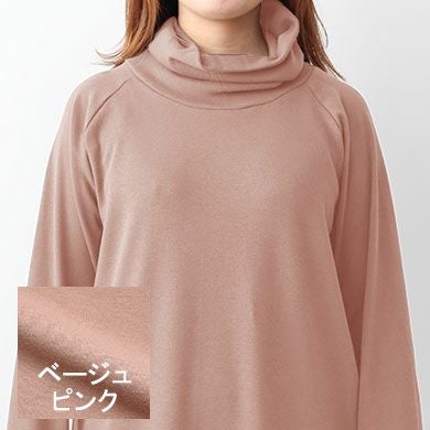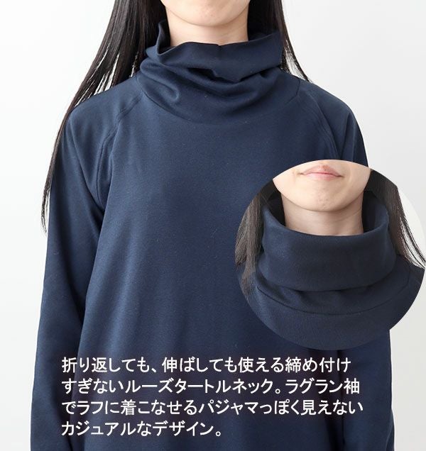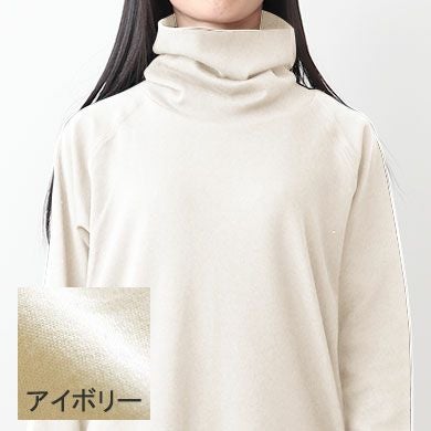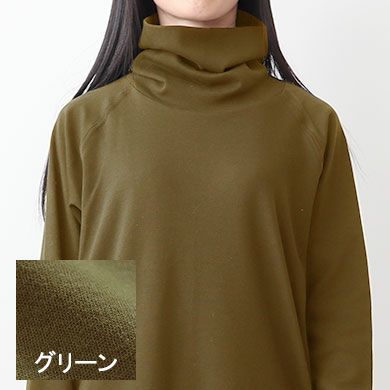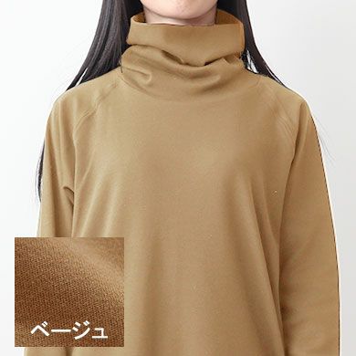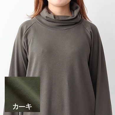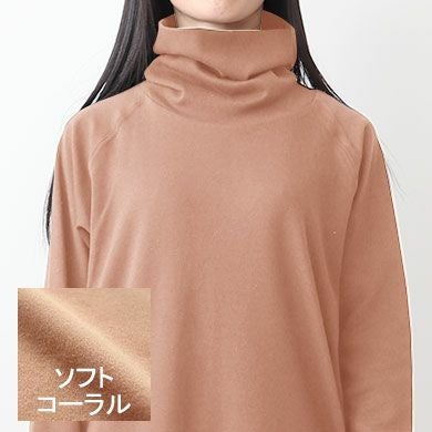 首元、ゆったりあったかルーズタートルネック コットンムースレディースワンピース・長袖/かぶり/タートルネック 【オーダーメイド】