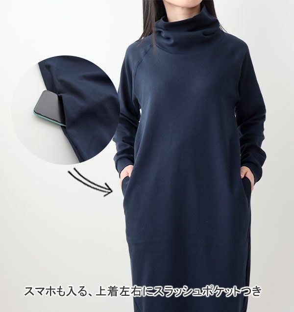 冬のあったか裏起毛スウェット 裏起毛スウェットレディースワンピース・長袖/かぶり/タートルネック 【オーダーメイド】