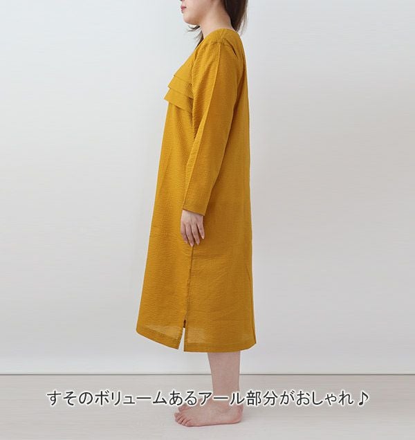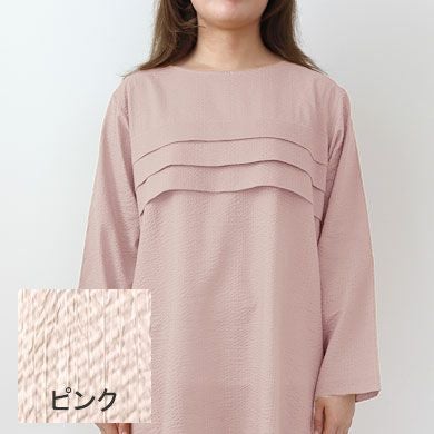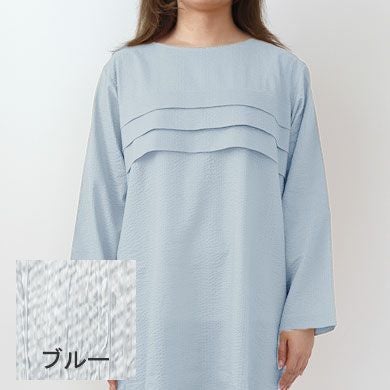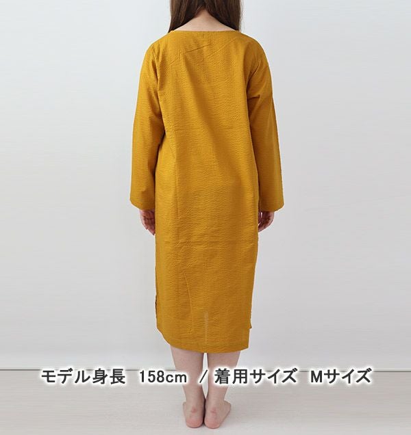ふわっと軽やか、ベタつかない。夏の爽快パジャマ エアリーリップルレディースワンピース・長袖/かぶり/ラウンドネック【オーダーメイド】