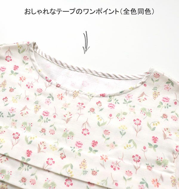フレンチカジュアルなテイスト 花柄ダブルガーゼ-petit flora-レディースワンピース・長袖/かぶり/ラウンドネック【オーダーメイド】
