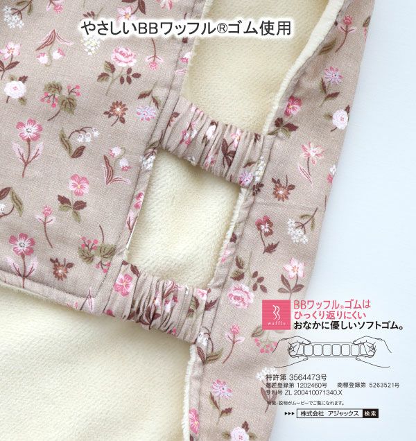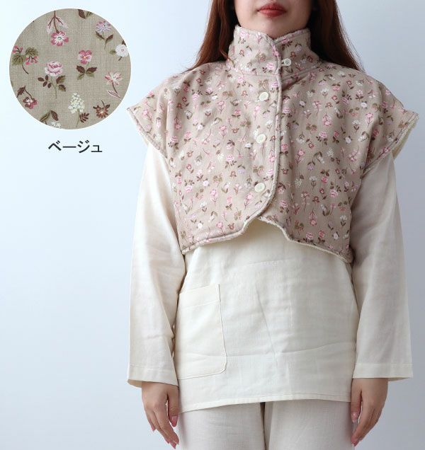 首もおなかもあったか。花柄ダブルガーゼボア肩当て