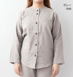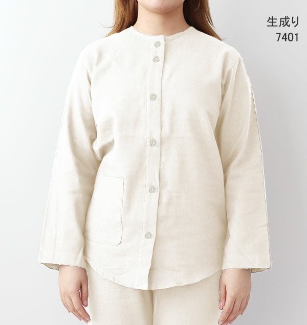 上下セット・長袖/前開き/襟なし