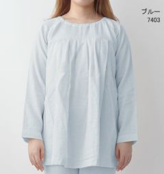 40オーガニックコットンダブルガーゼレディースパジャマ上下セット・長袖/かぶり/Aライン/胸元切替タック