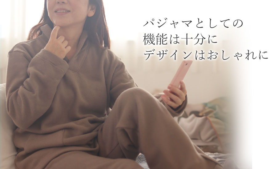 伸縮性のあるニットパイルだから着やすく、寝返りもうちやすく、動きやすい!1日中着ていてもストレスがありません。
