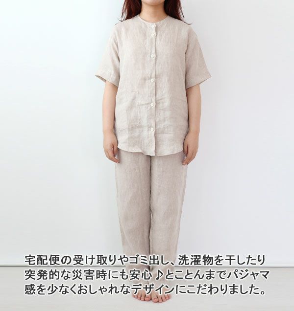 半袖長ズボンリネンパジャマ - 夏の睡眠に欠かすことができないエアコンですが、直接風にあたり続けると身体を冷やしすぎてしまうことも。そんな時は長袖長ズボンや半袖半ズボンで手首や足首を冷やさないようにしましょう。