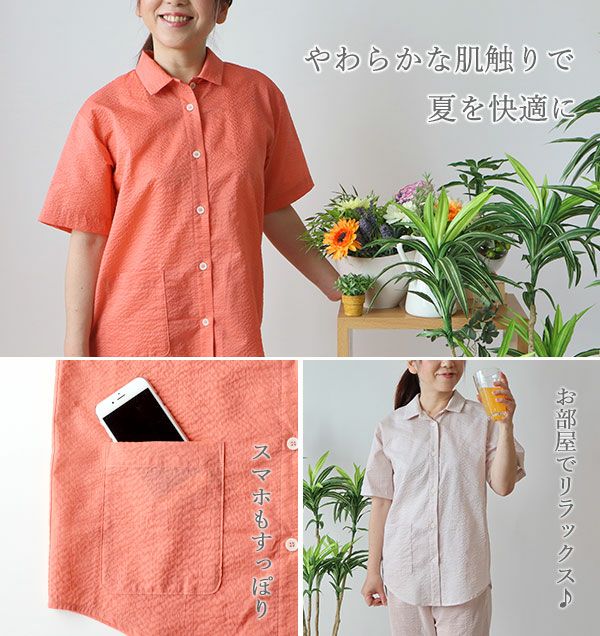 高級素材、80ローン、リップル加工だからまるでシャツのような仕上がり!ズボンだけかえればゴミ出しはもちろん外出にも着ていけそうです!涼しい夏のルームウェアとしても