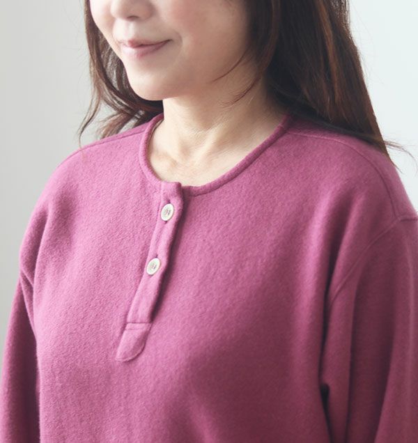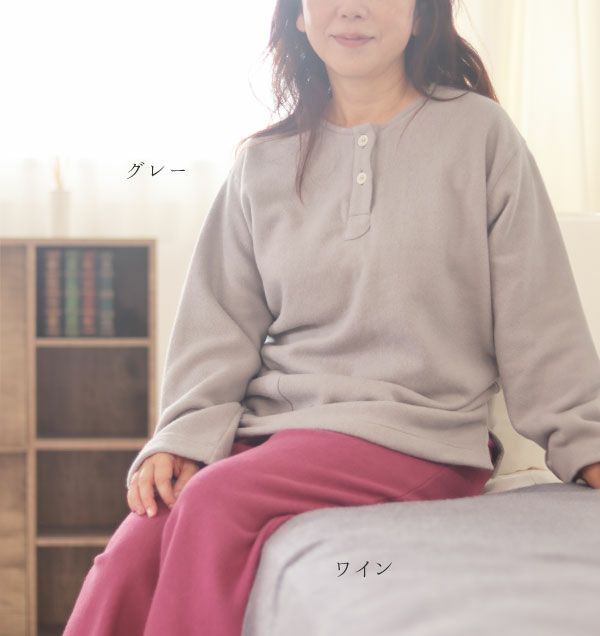 カシミヤタッチコットレディースパジャマ 上下セット・長袖/かぶり/ヘンリーネック