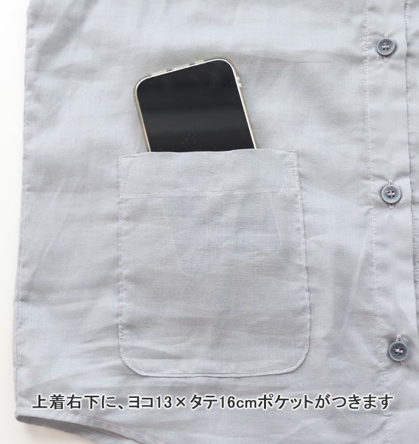 夏に最適、抜群の通気性の綿100%1重ガーゼパジャマ上着単品、レディースXS~5L。襟あり。長袖なので、クーラーの部屋でお休みの方におすすめです。一般的なパジャマの重量の約半分!和晒製法で作られたガーゼ地で極上の柔らかさ。袖丈・着丈の長さを調整可能!
