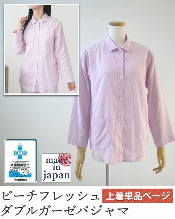 抗菌防臭ダブルガーゼレディースパジャマ上着単品・長袖/前開き/襟あり