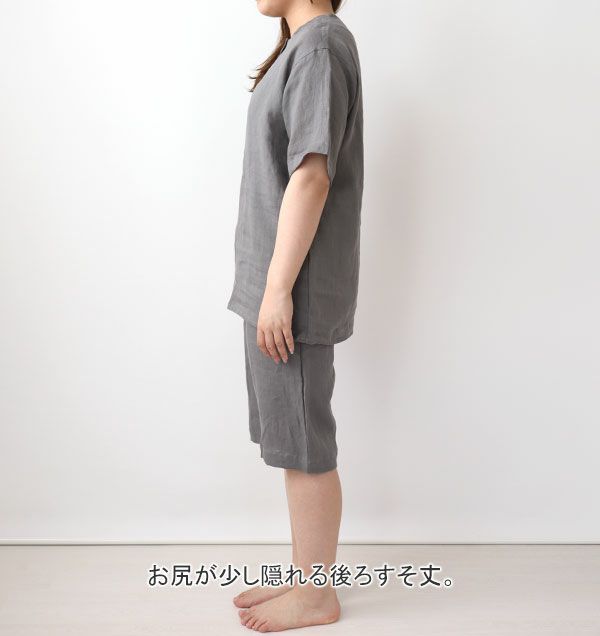 半袖短パンでひんやり優雅な夏を やわらかるいリネンレディースパジャマ上着単品・半袖/かぶり/ヘンリーネック 【オーダーメイド】