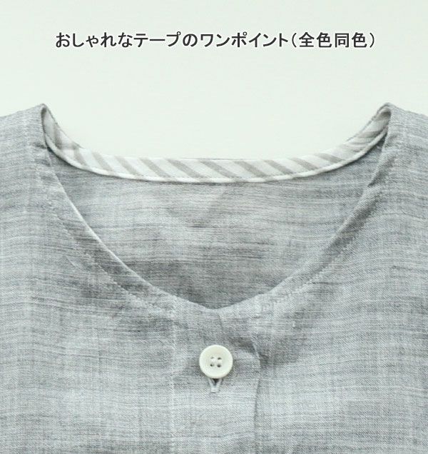 夏に最適、柔らかく軽いリネンの襟なしパジャマ上着単品。レディースXS~5L。長袖なので、クーラーの部屋でお休みの方におすすめです。クールクラッシュという洗いざらし加工で、麻とは思えない柔らかさ!細い60番手糸使用で、 他の麻と比べ30%も軽い!