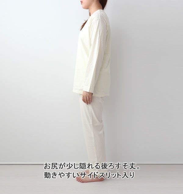 ルームウェア感覚で使える冬のストレッチニットレディースパジャマ上着単品で1日ゆったりあったかくXS,S,M,L,2L,3L,4L,5L展開【コットンスムース/綿100/日本製/長袖/襟なし/上着のみ】袖丈・着丈の長さ調整できる簡単セミオーダーサービス