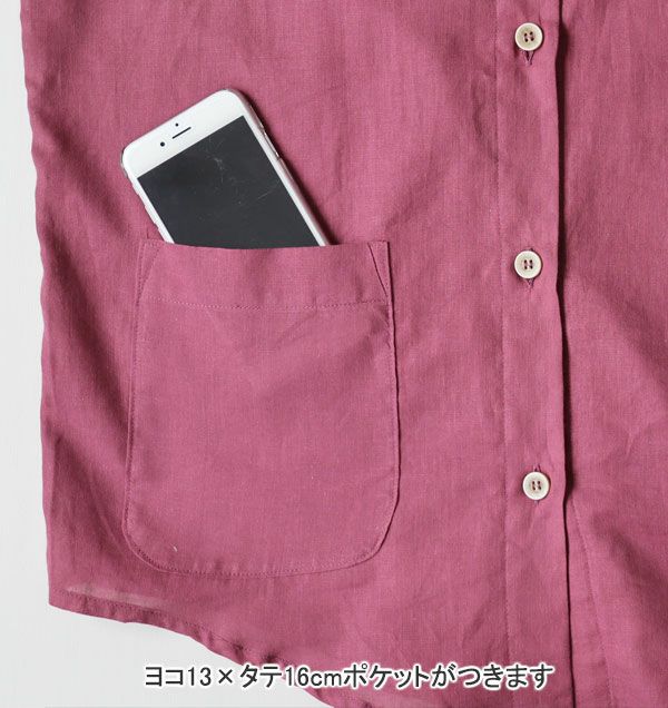 夏に最適、柔らかく軽いリネンの襟なしパジャマ上着単品。レディースXS~5L。七分袖タイプで涼しく過ごしたいけど冷やしたくない方におすすめです。クールクラッシュという洗いざらし加工で、麻とは思えない柔らかさ!他の麻と比べ30%も軽い!