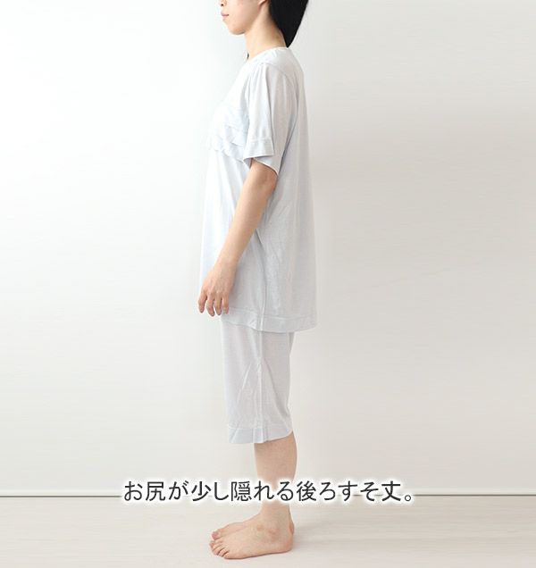 ふわっと軽やか、ベタつかない。涼しく冷やさず爽快な夏 エアリーリップルレディースパジャマ上着単品・七分袖/前開き/襟なし 【オーダーメイド】