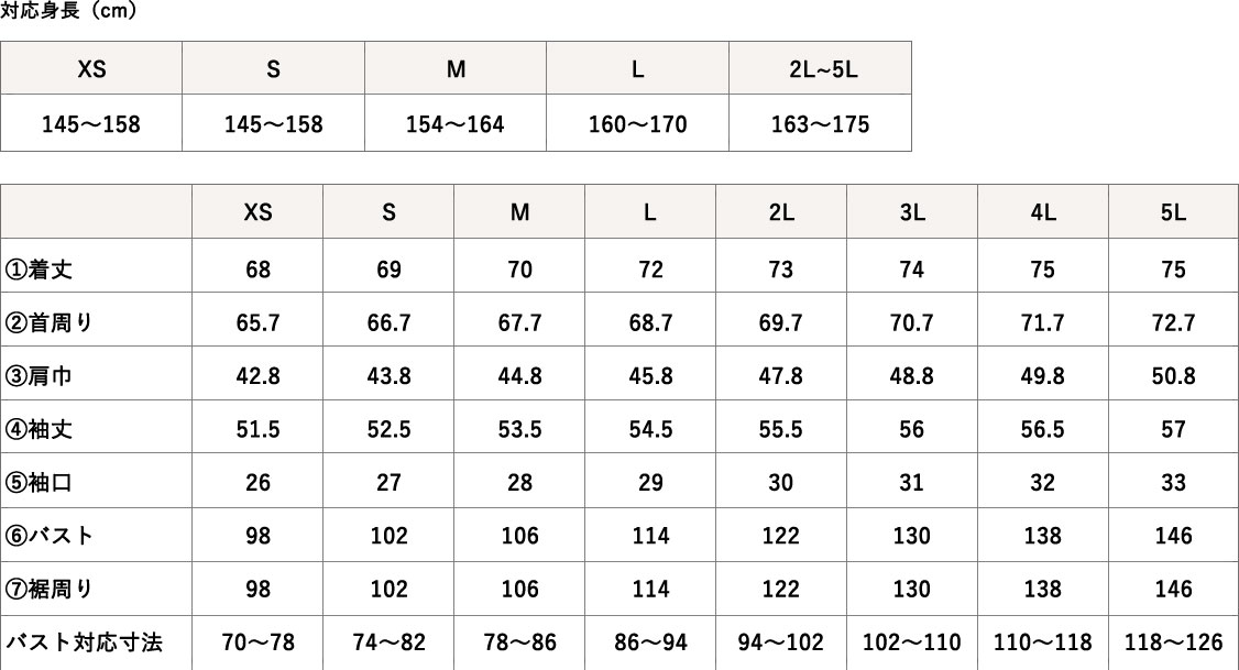 | 仕様 | 長袖 かぶり 右下ポケット 合わせ襟 |