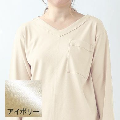 夏に大人気の1重ガーゼ素材からレディースVネックデザインの登場です!長袖だからエアコンのきいた部屋でも冷やさず涼しく快適にお使いいただけます。ルームウェアにも最適です。