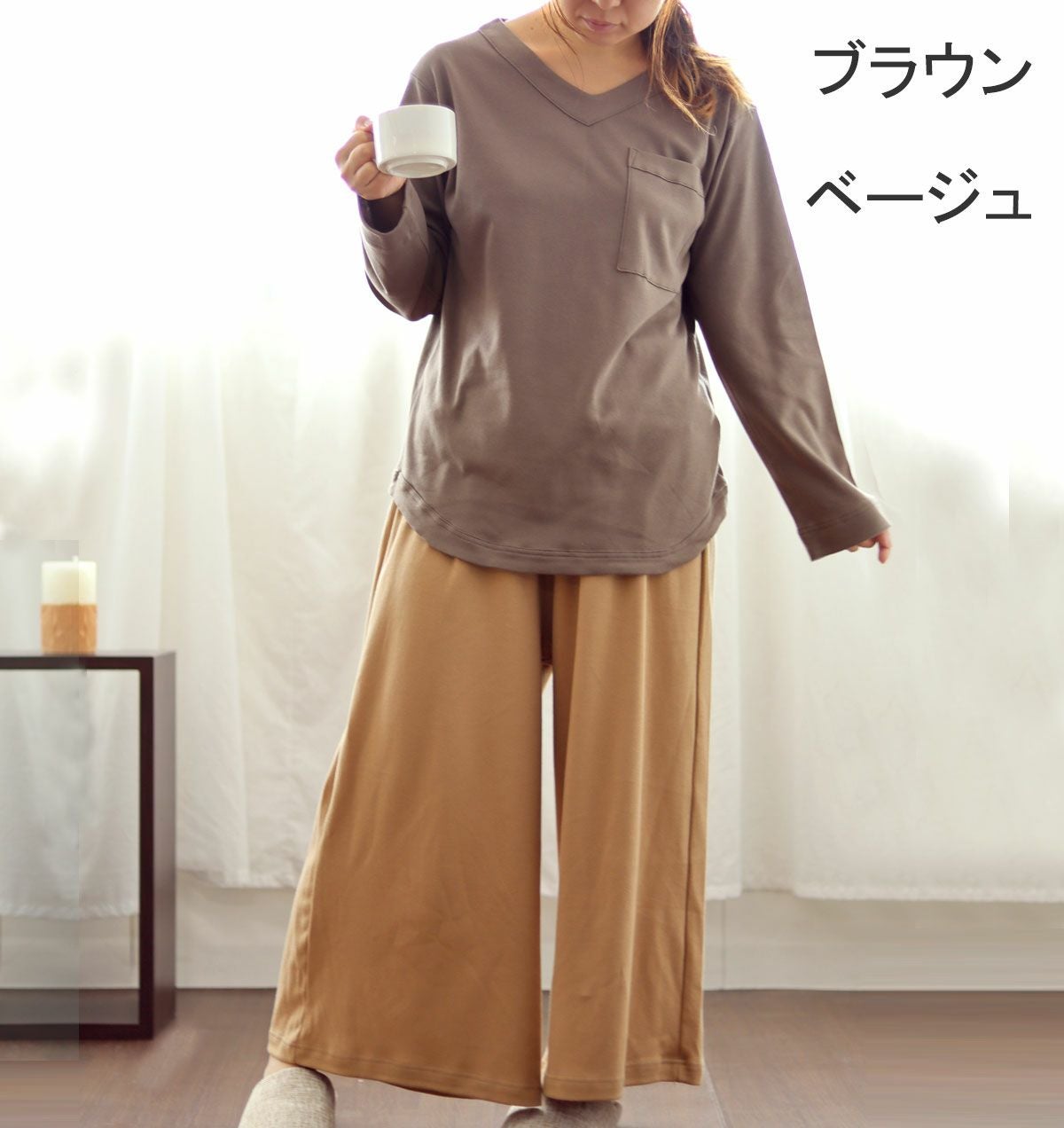 冬のお肌が喜ぶもっちりなめらかスムースニット コットンムースレディースパジャマ 上下セット・長袖/かぶり/Vネック/ガウチョパンツ/八分丈 【オーダーメイド】