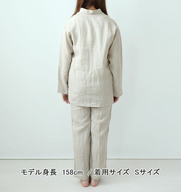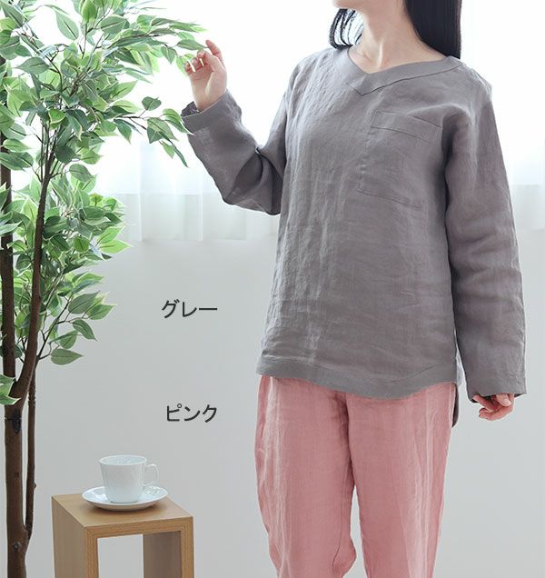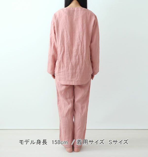 洗い加工のフランスリネンで優雅な夏を やわらかるいリネンレディースパジャマ 上下セット・長袖/かぶり/Vネック 【オーダーメイド】