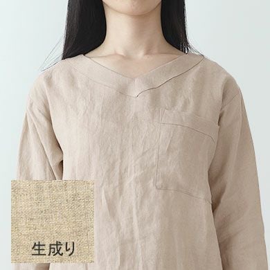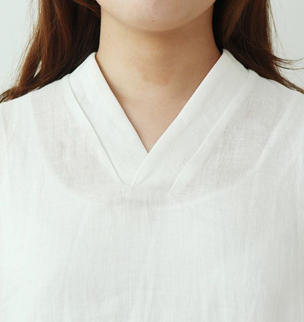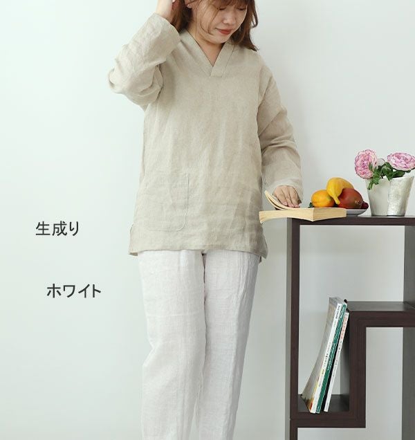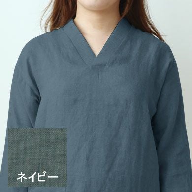 洗い加工のフランスリネンで優雅な夏を やわらかるいリネンレディース作務衣下着・ズボン付/長袖/かぶり 【オーダーメイド】