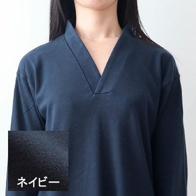 冬に人気のスムースニットでお作りしたレディースのあったか作務衣下着の登場です!滑らかな肌触りが心地良く、伸縮性もあるので、リラックスしてご着用いただけます。冬の作業着、ルームウェアにぴったりの素材です。