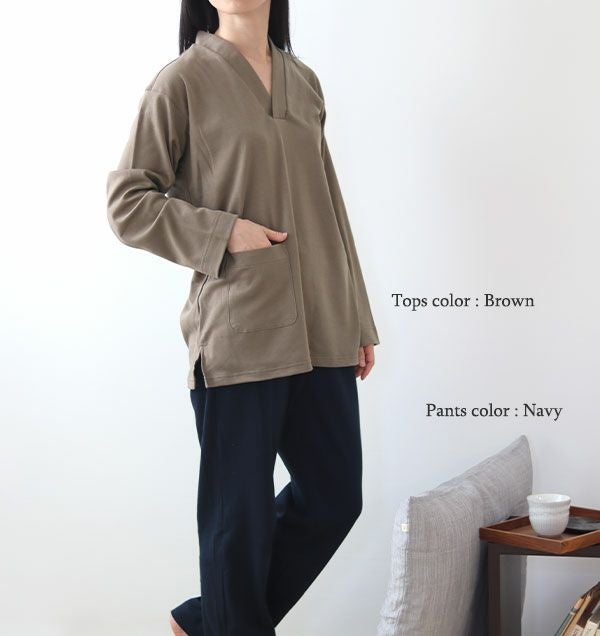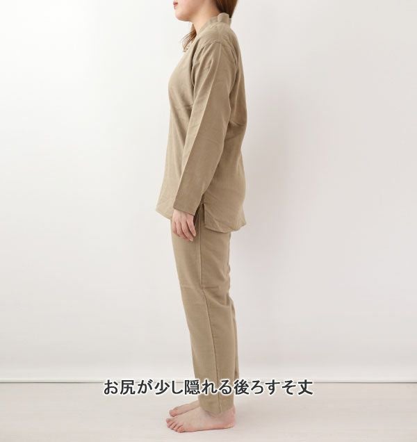 冬のお肌が喜ぶもっちりなめらかスムースニット コットンムースレディース作務衣下着・ズボン付/長袖/かぶり 【オーダーメイド】