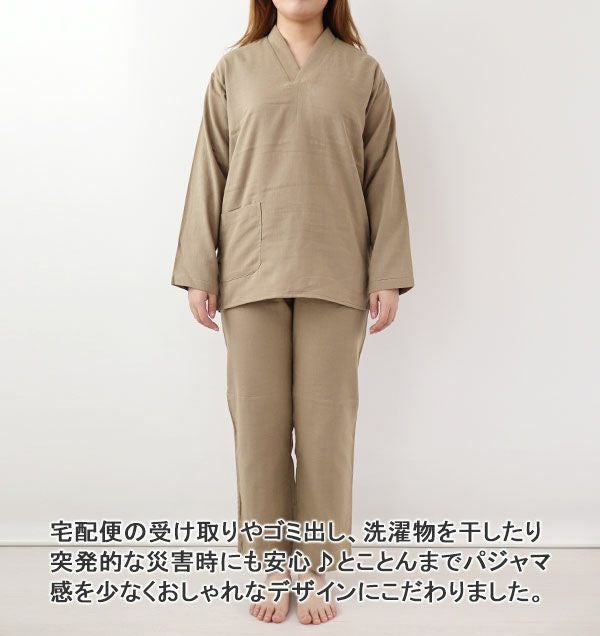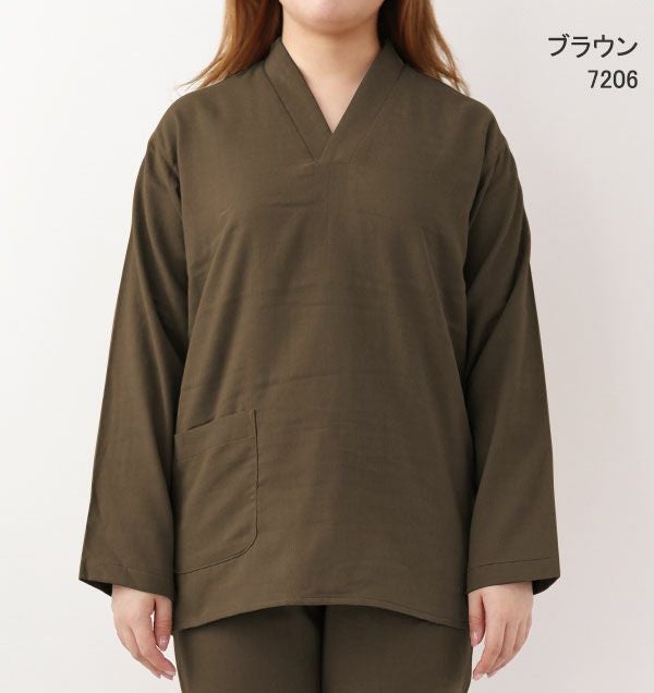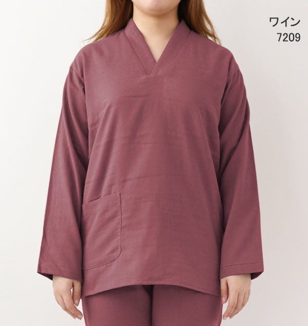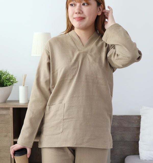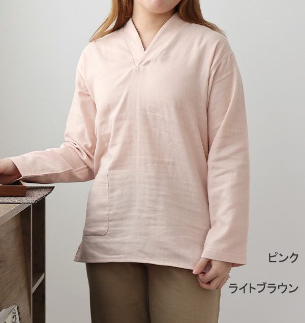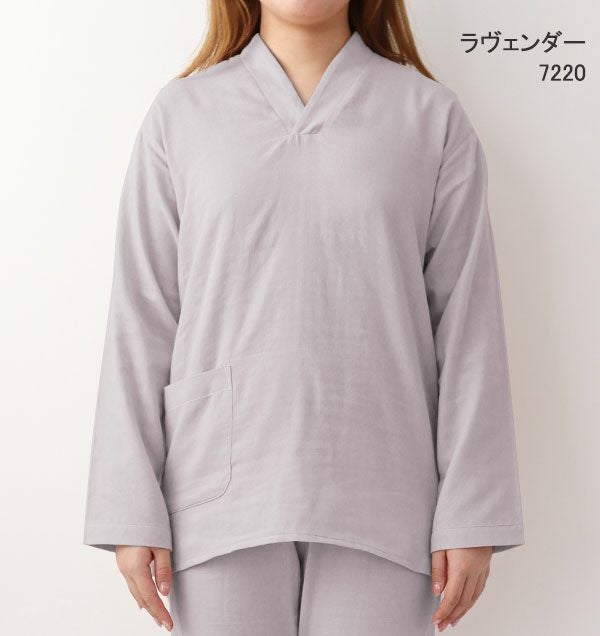 毛布なみの暖かさ!冬も使えるガーゼ 3重ガーゼレディース作務衣下着・ズボン付/長袖/かぶり 【オーダーメイド】